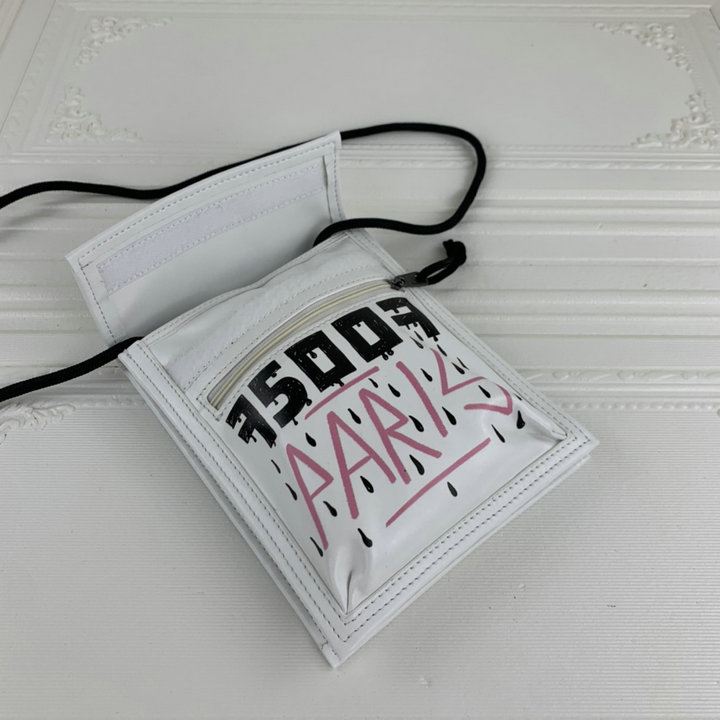 编号: 600ZY820250品牌: 巴黎世家 BALENCIAG尺寸:size:15.5*4*19cm (W宽*H高*D厚)cm新款巴黎世家皮绳挎包涂鸦手机包原版进口褶皱皮数码烫logo 植鞣皮绳内侧双面刻字logo