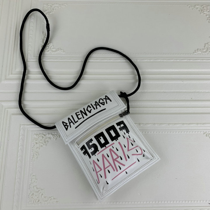 编号: 600ZY820250品牌: 巴黎世家 BALENCIAG尺寸:size:15.5*4*19cm (W宽*H高*D厚)cm新款巴黎世家皮绳挎包涂鸦手机包原版进口褶皱皮数码烫logo 植鞣皮绳内侧双面刻字logo