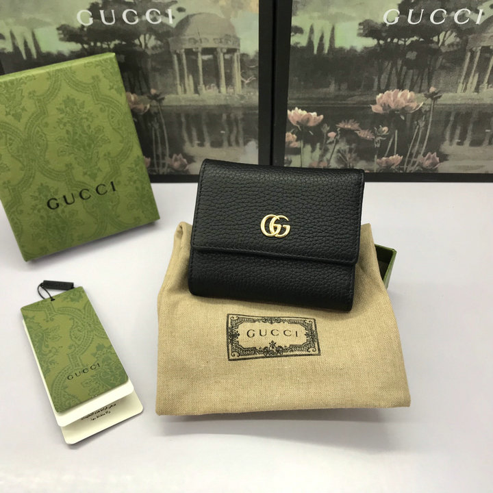 编号: 4A965A1YG215品牌: 古驰 ( GUCCI )尺寸(size):12.5x10x3(W长*H高*D宽)cm 描述(Describe):顶级原厂皮(配绿盒包装)专柜品质,原单皮质,实物实拍。款号:546584黑色全皮。新款GG Marmont系列三折钱包!采用进口头层牛皮配以品牌标志性双G金属!海外顶级五金!精制而成!