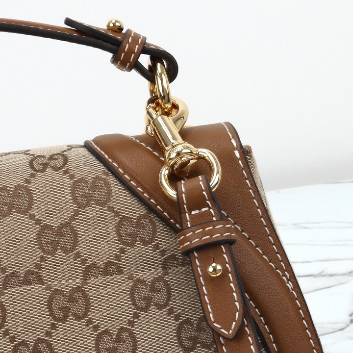 编号: 39A94G5CS660品牌: 古驰 ( GUCCI )尺寸(size):27x18x7(W长*H高*D宽)cm 描述(Describe):市场放货新款来袭,专柜品质,顶级原单货,明星同款实物实拍!型号:815714杏布棕皮《原单纽扣》,现货出货!
