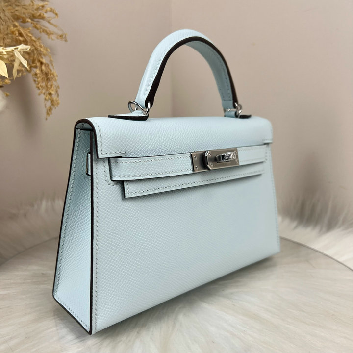 编号: 57A920A1SP1450品牌: 爱马仕 ( HERMES ) 尺寸(size):19*12*6(W长*H高*D宽)cm 描述(Describe): Mini Kelly二代 3Q粉 银扣 Epsom牛皮 凯莉包 全手工蜡线全钢五金 雕刻字体出厂现货.