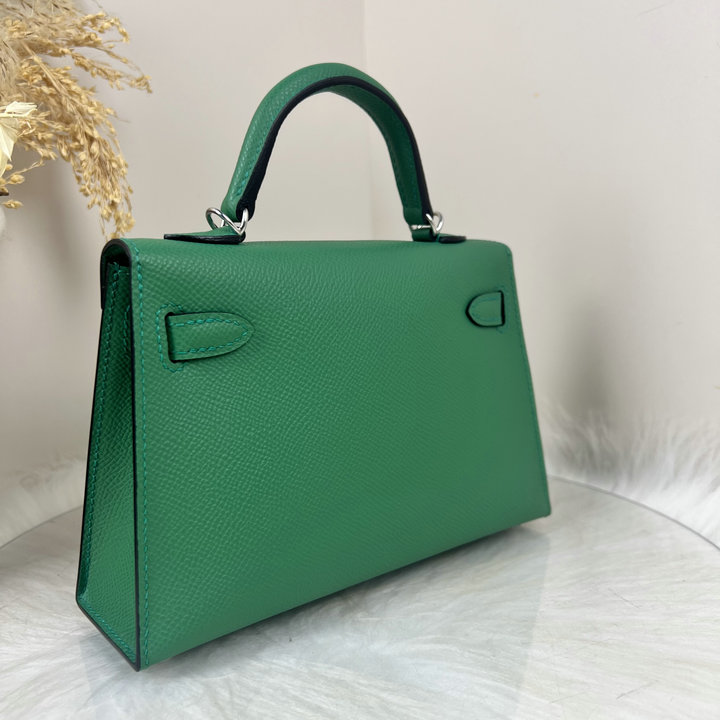 编号: 57A920A1SP1450品牌: 爱马仕 ( HERMES ) 尺寸(size):19*12*6(W长*H高*D宽)cm 描述(Describe): Mini Kelly二代 3Q粉 银扣 Epsom牛皮 凯莉包 全手工蜡线全钢五金 雕刻字体出厂现货.