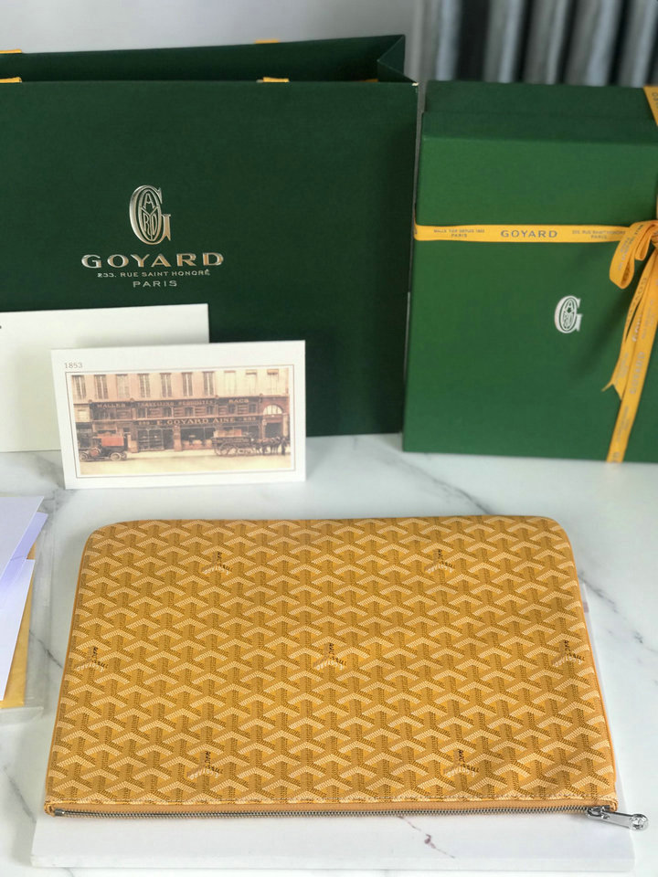 编号: 87A985B1GY260品牌: 戈雅 ( G0YARD )尺寸:size:40*30(W长*H高*D宽)cm描述(Describe):“平价”也能拥有的经典!SENAT大号手拿包外貌精致便携,但内部设计提供了丰富的储物空间Goyard的老花图已经成为奢侈品世界的经典之一 ,代表了品质、传统和个性!轻巧实用,男生和女生拿都非常简约帅气!!GM大号.020169 .