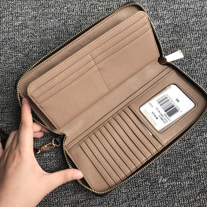 编号: 760WZ310190品牌: 迈克科尔 MK尺寸:size:21*11 cm (W宽*H高*D厚)cm手腕包全开内里手腕带可拆卸内置16个卡位,6个钞位可放方便实用牌配原单礼品盒 代购拿去随便卖:现货:黑色