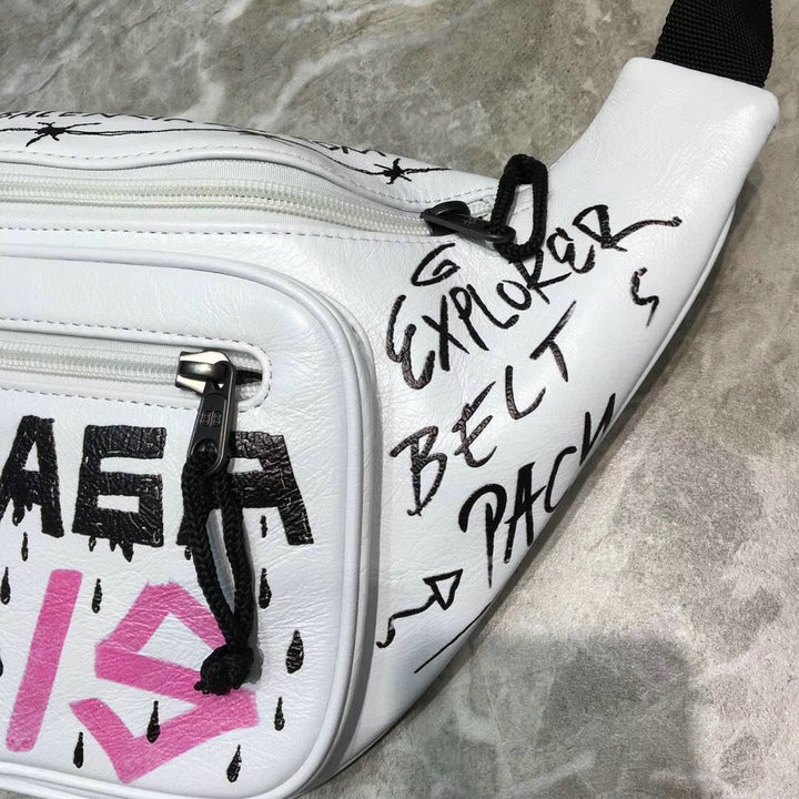 编号: 430ZY620280品牌: 巴黎世家 BALENCIAG尺寸:size:37*8.5*17 cm (W宽*H高*D厚)cm 斜挎胸包 采用进口柔软油蜡皮材质 正面拉链口袋 正面饰涂鸦撞色Balen品牌标识 拉链隔层 可调节腰带