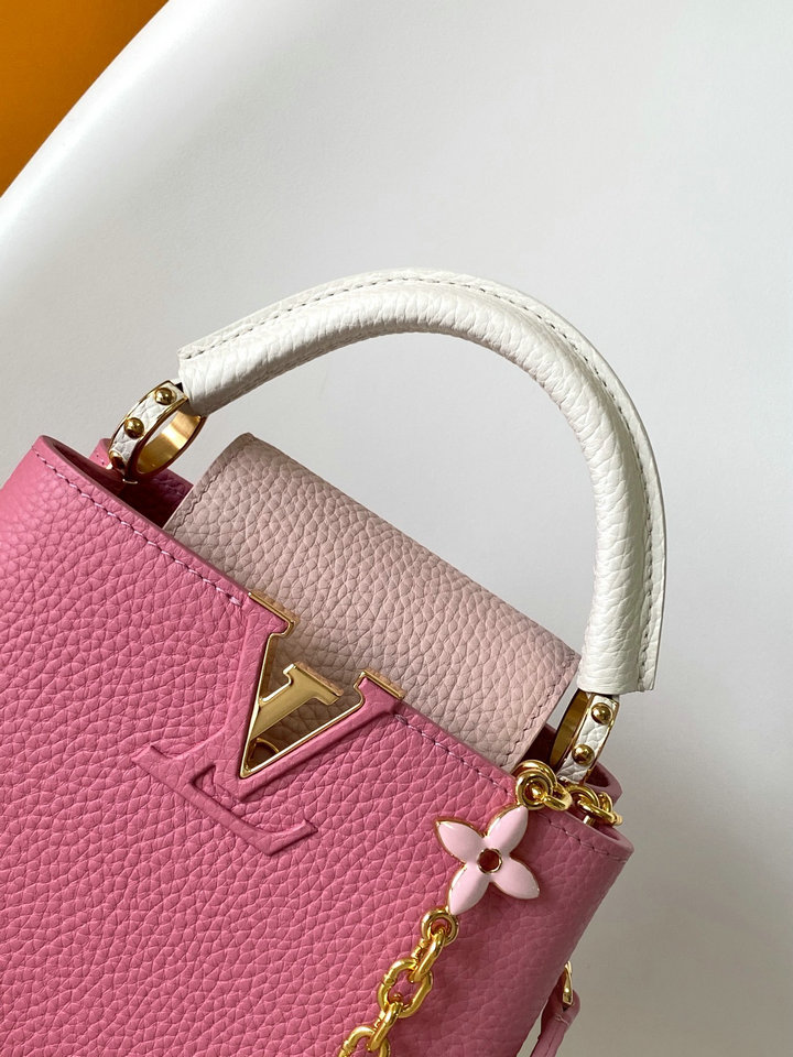 Describe: | 编号: 83A9606I91AH11001200品牌: 路易威登 ( LV )尺寸(size):16.3 x 11.0 x 6.5 cm 21.0 x 14.0 x 8.0 cm(W长*H高*D宽)cm 描述(Describe):M23951粉色 M25339米白M23950黑色M11343纯白配粉 M25386黑配白 M23952白配蓝 M24471绿色 M22514白配黄 M22375秋水仙 M20845纯白 M20844蜜桃粉 特级原厂皮 动态变码芯片 本款 Capucines 迷你手袋为 Taurillon 皮革包身搭配华美 Lovelock 链条,以编织链环烘托手绘珐琅 Monogram 元素和 LV 铭纹挂锁。皮革 LV 标识再添瞩目光彩。Taurillon 皮革, Taurillon 皮革饰边,牛皮革内衬,金属件, 釉面效果,翻盖可置于内侧或外侧,隔层内配有贴袋,金属底钉, 肩带:可拆卸,可调节,包带半长:55.0 厘米, 包带半长可调至:59.0 厘米, 链条:可拆卸, 链条半长:31.0 厘米,手柄:单手柄。 |