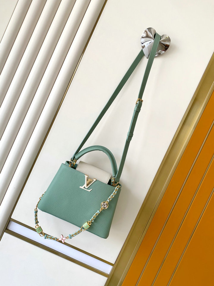 Describe: | 编号: 83A9606I91AH11001200品牌: 路易威登 ( LV )尺寸(size):16.3 x 11.0 x 6.5 cm 21.0 x 14.0 x 8.0 cm(W长*H高*D宽)cm 描述(Describe):M23951粉色 M25339米白M23950黑色M11343纯白配粉 M25386黑配白 M23952白配蓝 M24471绿色 M22514白配黄 M22375秋水仙 M20845纯白 M20844蜜桃粉 特级原厂皮 动态变码芯片 本款 Capucines 迷你手袋为 Taurillon 皮革包身搭配华美 Lovelock 链条,以编织链环烘托手绘珐琅 Monogram 元素和 LV 铭纹挂锁。皮革 LV 标识再添瞩目光彩。Taurillon 皮革, Taurillon 皮革饰边,牛皮革内衬,金属件, 釉面效果,翻盖可置于内侧或外侧,隔层内配有贴袋,金属底钉, 肩带:可拆卸,可调节,包带半长:55.0 厘米, 包带半长可调至:59.0 厘米, 链条:可拆卸, 链条半长:31.0 厘米,手柄:单手柄。 |