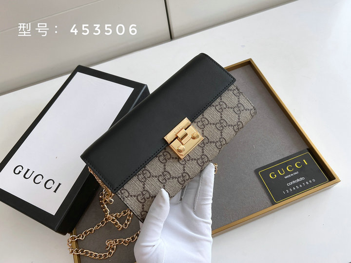 | Describe: | 编号: 82A95E68CL105130品牌: 古驰 ( GUCCI )尺寸:size:11.5x10x2 cm 19x 10x 3.5cm (W长*H高*D宽)cm描述(Describe):顶级原版 GUCCI专柜品质 #实物实拍 啡PVC/黑皮。Padlock长款链条包采用GG Supreme 高级人造革,配以海外顶级锁扣五金精制而成!款号:453506# | ||