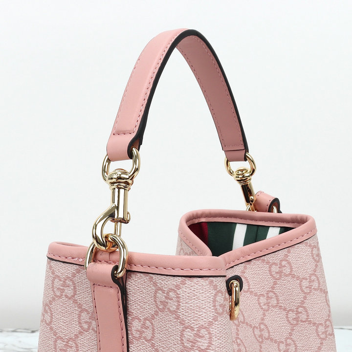 编号: 33A96G3CS480品牌: 古驰 ( GUCCI )尺寸(size):19*18*11(W长*H高*D宽)cm 描述(Describe):市场放货,新款来袭专柜品质,顶级原单货,实物实拍,款号:815118粉胶《原厂皮,专柜防尘布袋》,现货出货。