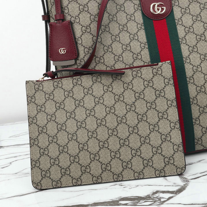 编号: 18A96H4CS580品牌: 古驰 ( GUCCI )尺寸(size):33.5*16*30(W长*H高*D宽)cm 描述(Describe):市场放货,新款来袭专柜品质,顶级原单货,实物实拍,款号:836871啡红《原厂皮,专柜防尘布袋》,现货出货。