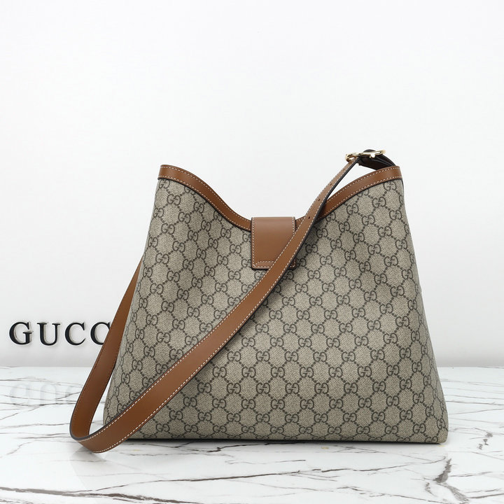编号: 64A90H5CS620品牌: 古驰 ( GUCCI )尺寸(size):37*32*16(W长*H高*D宽)cm 描述(Describe):市场放货新款来袭专柜品质顶级原单货实物实拍款号:839020杏棕《原厂皮专柜防尘布袋》现货出货。