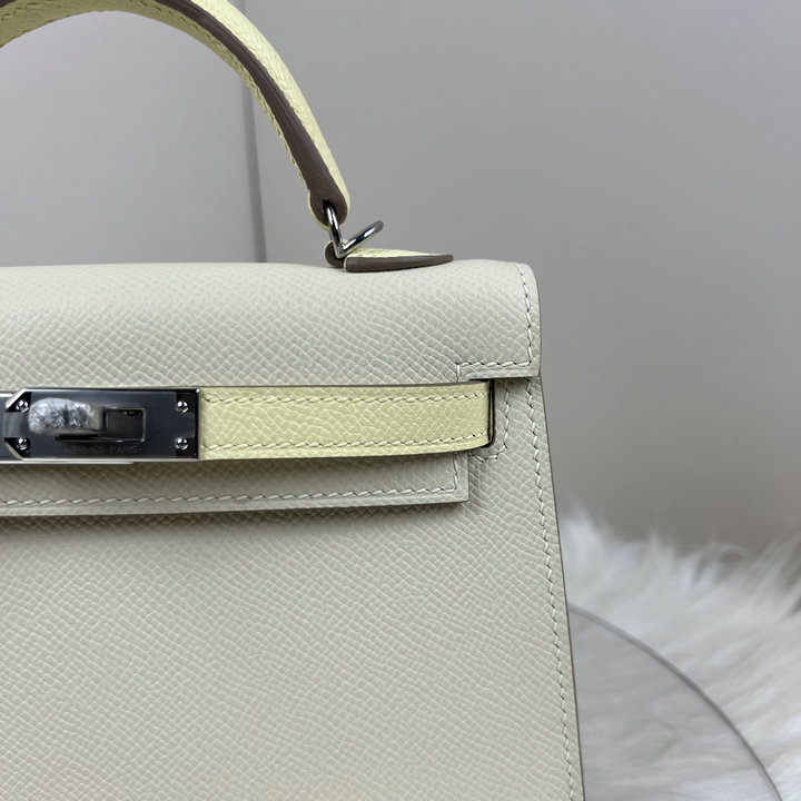 | Describe: | 编号: 51A930A1SP1550品牌: 爱马仕 ( HERMES ) 尺寸(size):19(W长*H高*D宽)cm 描述(Describe):HERMES爱马仕 Mini Kelly二代 二代金扣欧美时尚 Epsom牛皮 凯莉包单肩包手提包迷你 奶昔白/大象灰 两色拼 金扣 高端品质全手 全钢 蜡线 雕刻字体出厂现货. | ||