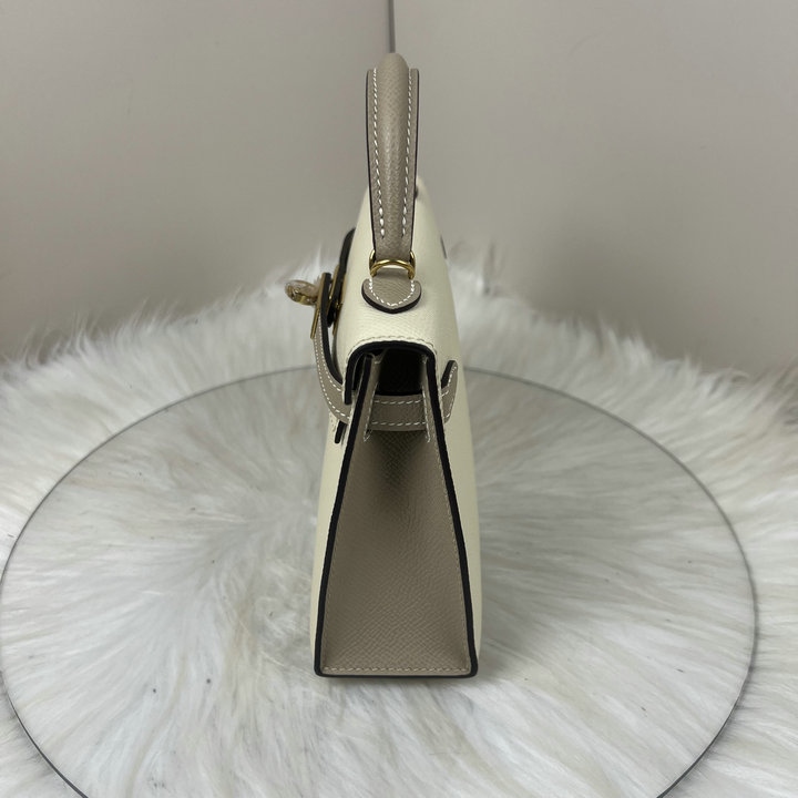 | Describe: | 编号: 51A930A1SP1550品牌: 爱马仕 ( HERMES ) 尺寸(size):19(W长*H高*D宽)cm 描述(Describe):HERMES爱马仕 Mini Kelly二代 二代金扣欧美时尚 Epsom牛皮 凯莉包单肩包手提包迷你 奶昔白/大象灰 两色拼 金扣 高端品质全手 全钢 蜡线 雕刻字体出厂现货. | ||