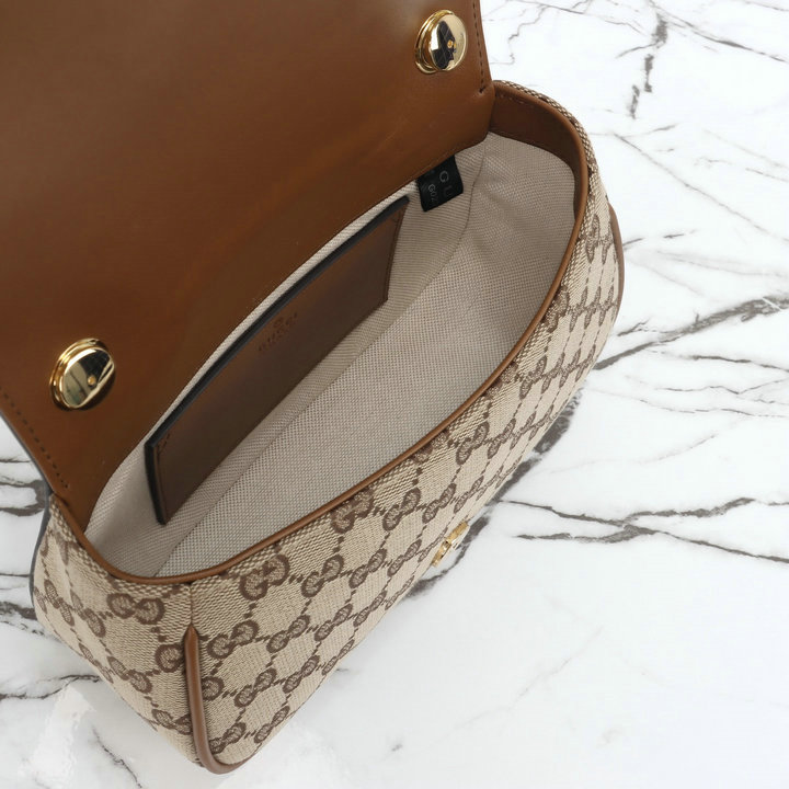 编号: 12A90I5CS620品牌: 古驰 ( GUCCI )尺寸(size):21.5x11x8(W长*H高*D宽)cm 描述(Describe):市场放货,新款来袭,专柜品质,顶级原单货,明星同款实物实拍!型号:815700杏布棕皮《原单纽扣》,现货出货!
