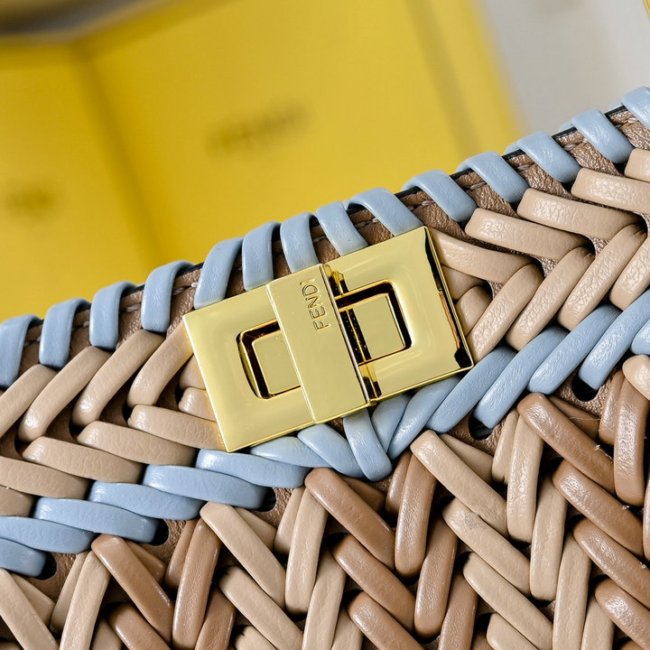 | Describe: | 编号: 23A950B1HZ1620品牌: 芬迪 ( FENDI )尺寸:size:20 cm(W长*H高*D宽)cm描述(Describe):上新啦标志性中号BAGUETTE手袋,提花FF图案布料材质,缀以FF搭扣。设有正面翻盖、磁扣、带拉链袋的内部隔层和银色金属件。手袋配有可拆卸式皮革提手和肩带,可手提、肩背或斜挎。 | ||