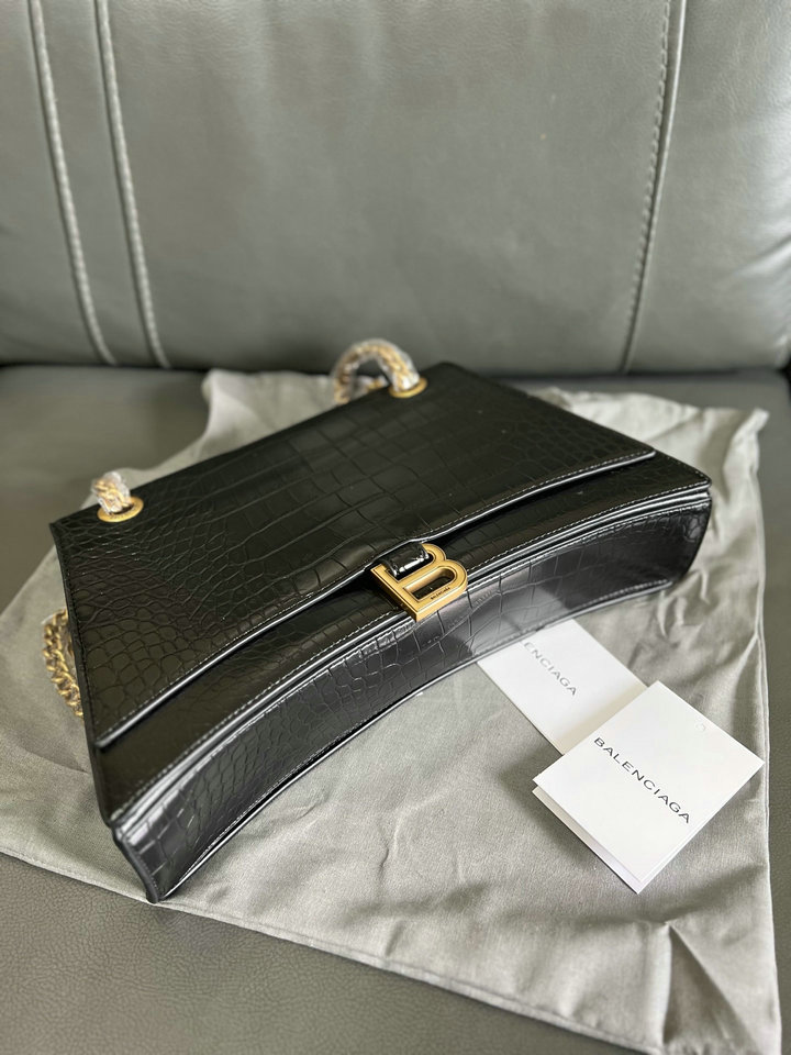 | Describe: | 编号: 31A95B3JG480品牌: 巴黎世家 BALENCIAGA尺寸(size):32*13*20.5(W长*H高*D宽)cm 描述(Describe):原单跑量批Balenciag*巴黎世嘉 CRUSH 哑光枕头包 Niki包 牛皮 链条单肩包 中号 女款 黑色crush经典沙漏轮廓却又像枕头般柔软,揉成团又展开的做旧折纸质感,耐看日常又百搭。crush包款以解构手法重释经典,包身延续了拱形包底与尖角边缘设计,去掉手柄,保留B扣。既可将链条穿过环圈对折作为手拎包或腋下包,亦可调整成单链条做单肩包或斜挎包,一个包有四种背法。款号:39322. | ||