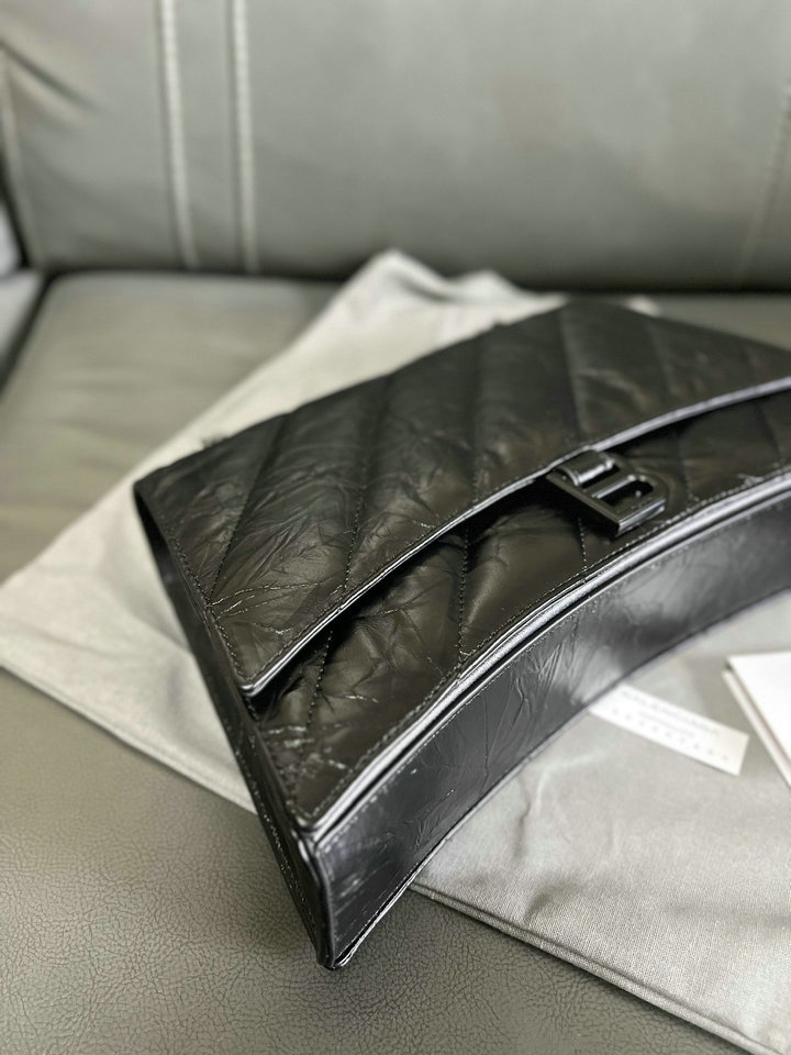 | Describe: | 编号: 31A95B3JG480品牌: 巴黎世家 BALENCIAGA尺寸(size):32*13*20.5(W长*H高*D宽)cm 描述(Describe):原单跑量批Balenciag*巴黎世嘉 CRUSH 哑光枕头包 Niki包 牛皮 链条单肩包 中号 女款 黑色crush经典沙漏轮廓却又像枕头般柔软,揉成团又展开的做旧折纸质感,耐看日常又百搭。crush包款以解构手法重释经典,包身延续了拱形包底与尖角边缘设计,去掉手柄,保留B扣。既可将链条穿过环圈对折作为手拎包或腋下包,亦可调整成单链条做单肩包或斜挎包,一个包有四种背法。款号:39322. | ||